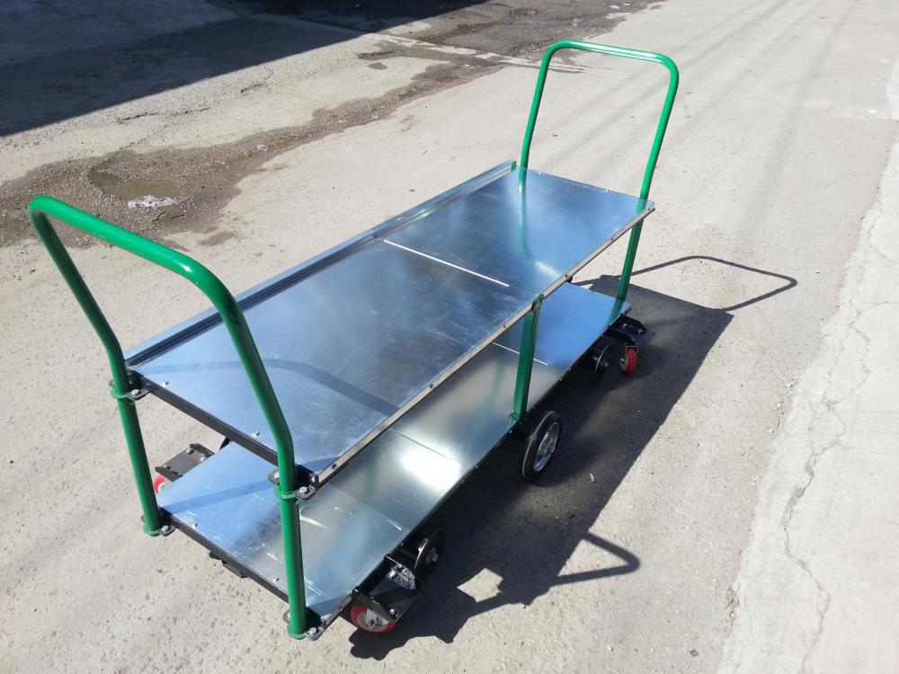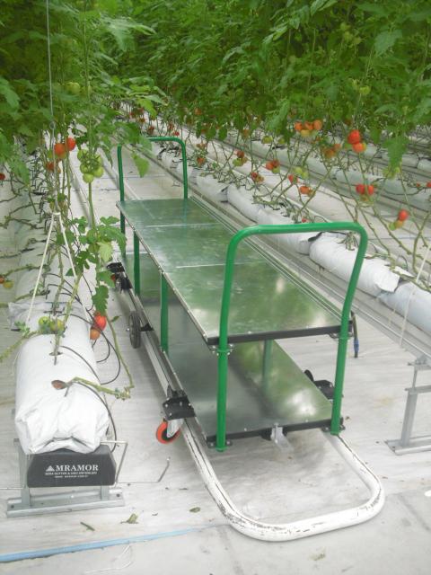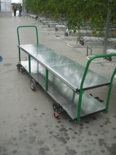 - چرخ دستی های دو طبقه برداشت محصول برای برداشت فلفل، گوجه فرنگی و خیار در جعبه ها طراحی شده اند.
