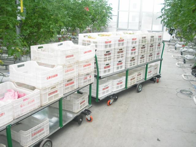- از چرخ دستی های برداشت برای فرستادن محصولات برداشت شده از گلخانه به انبارها استفاده می شود.